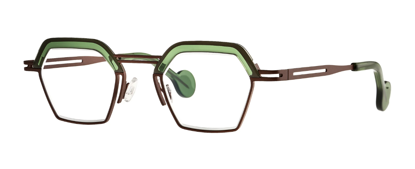 De collectie combineert titanium voor precisie en lichtheid met acetaat boven de glazen en aan de oortips voor warmte en textuur. Elk montuur bestaat uit lagen, subtiele kleurcontrasten en die typische theo‑twist: speels, verrassend en altijd expressief. MAKE UP biedt ruimte voor zachtheid én lef, voor minimalisme én bold statements.